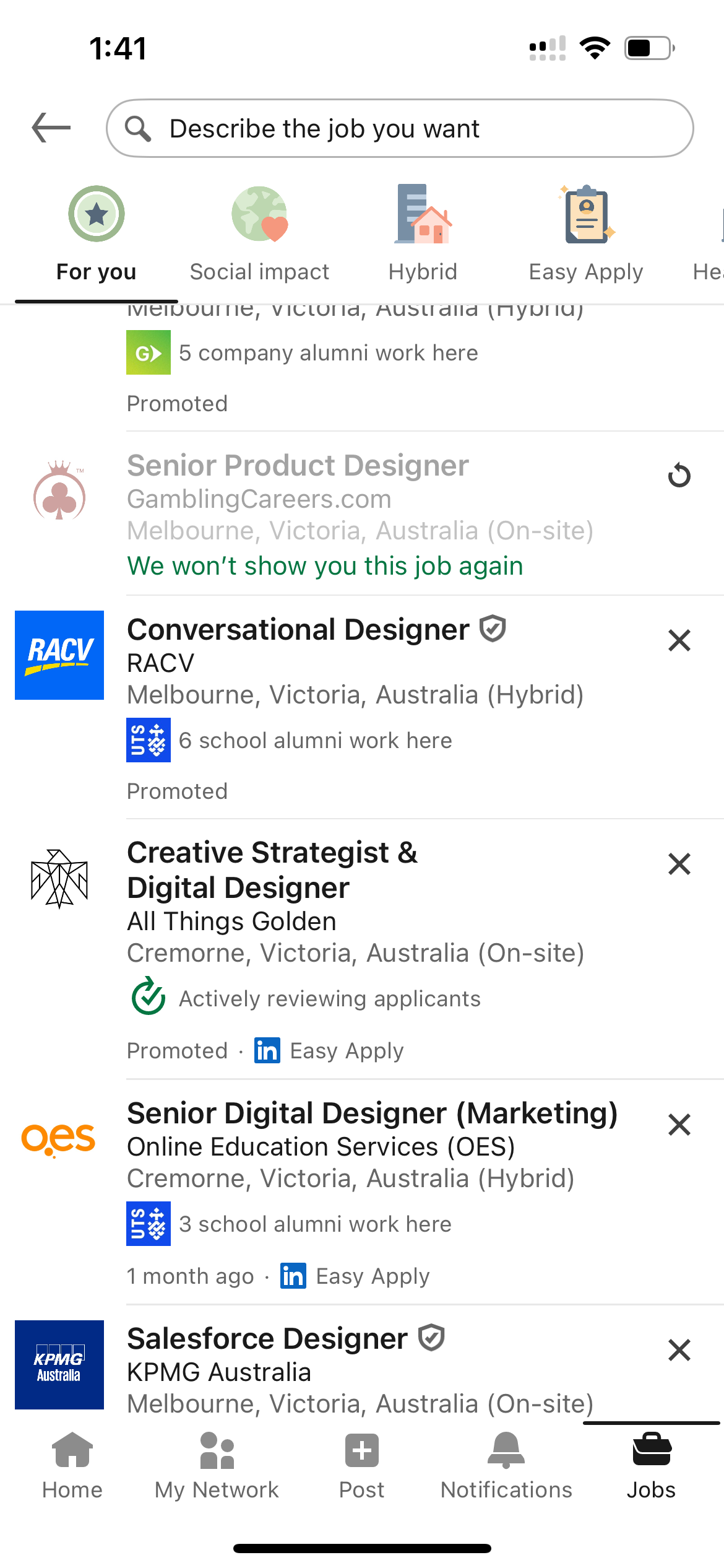 I recently provided feedback in the LinkedIn app to hide a job ad I wasn’t interested in, and the action was acknowledged.